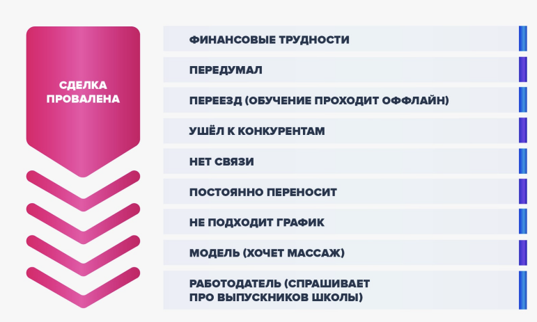 Цель воронки отказов: вернуть потенциального клиента в первичную или повторную воронку продаж.