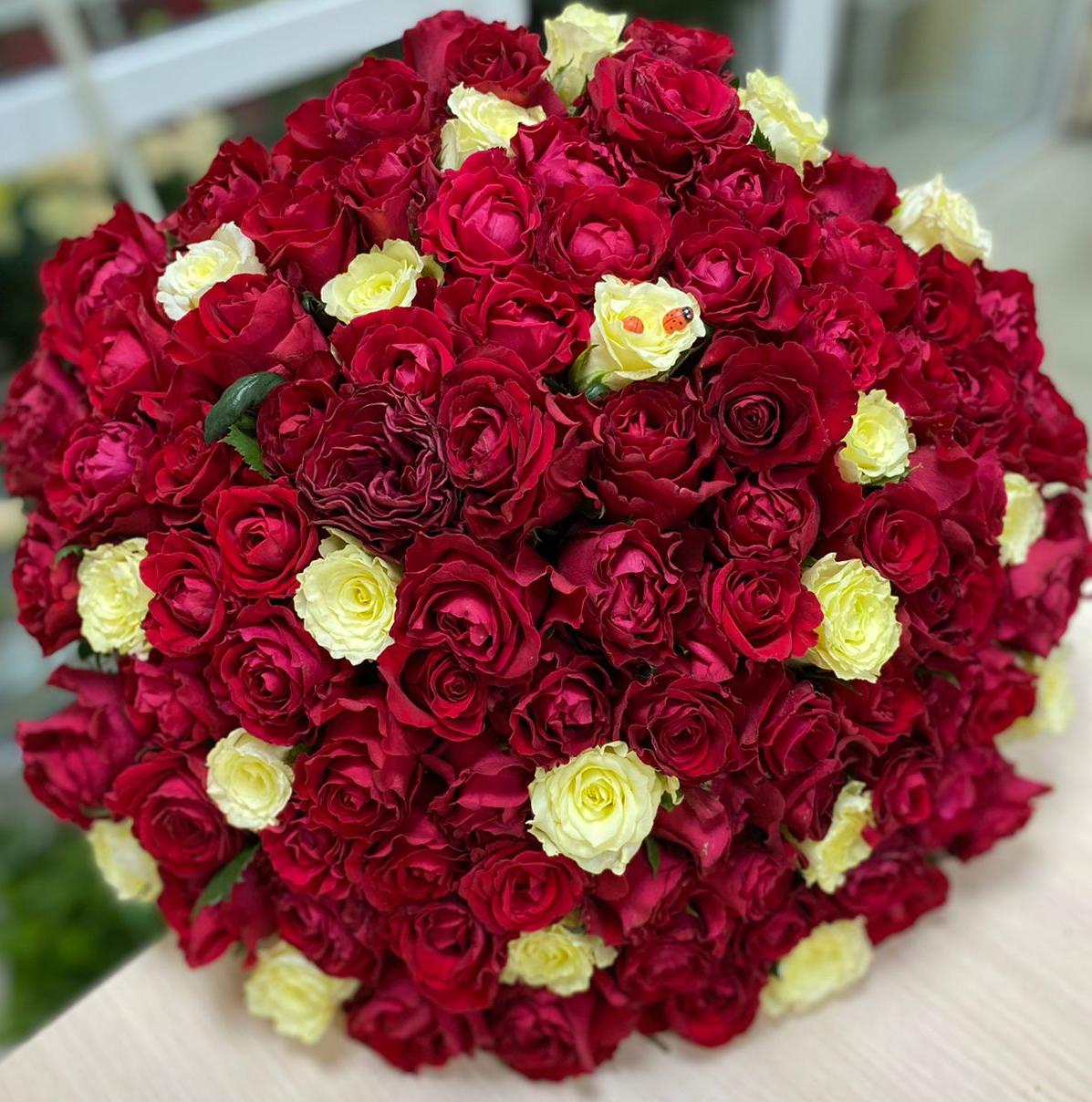 101 красно-белая роза 40-50см, 2сорт Упаковка оплачивается отдельно. Мирна и Вайт найт