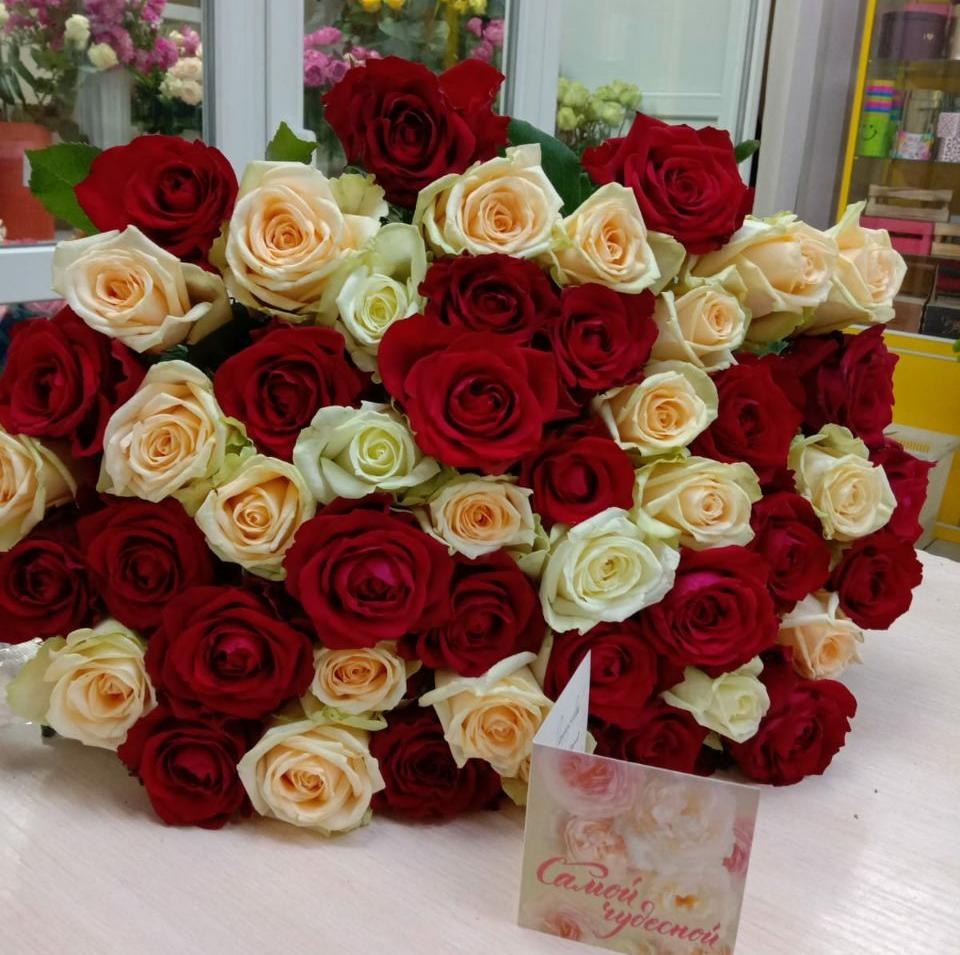 51 роза 2сорт микс красных и персиковых роз