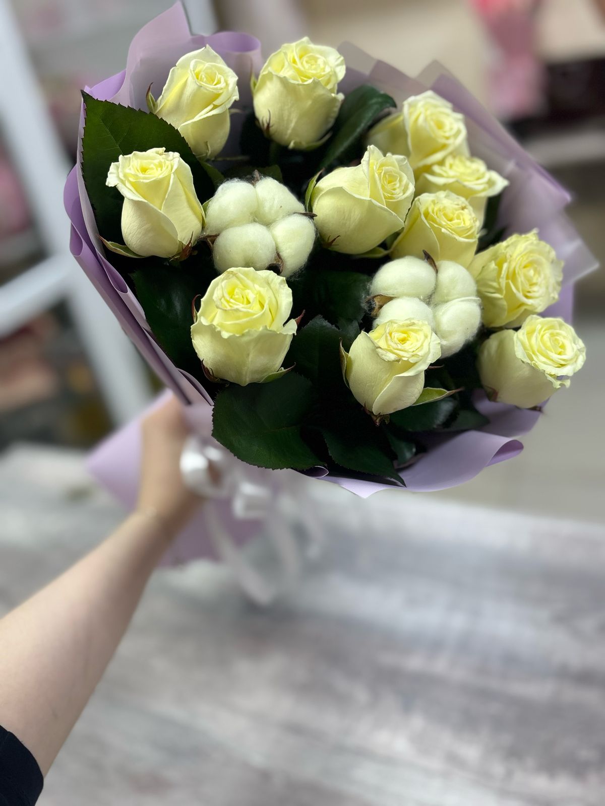 11 роз 40-50см, 2 сорт в оформлении, в ассортименте разные цвета