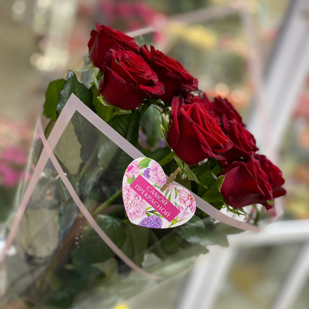 9 роз, 60см в упаковке на выбор