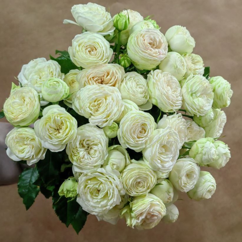 Кустовая роза – королева белых спреев. Круглые бутоны правильной формы, раскрываясь, приобретают в центре цвет топлёного молока.