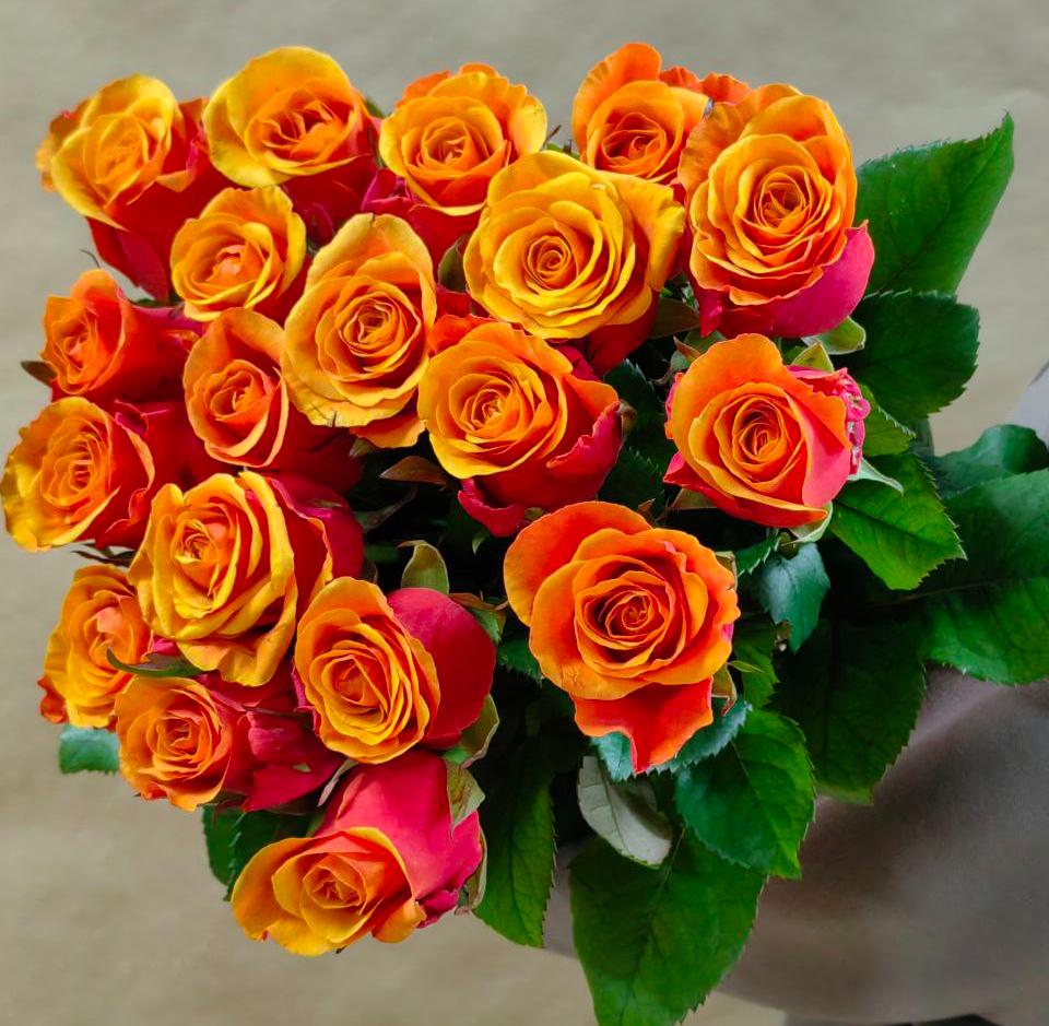 Крупные классической формы бутоны от насыщенного красного, даже бордового цвета снаружи, до жёлтого внутри.
