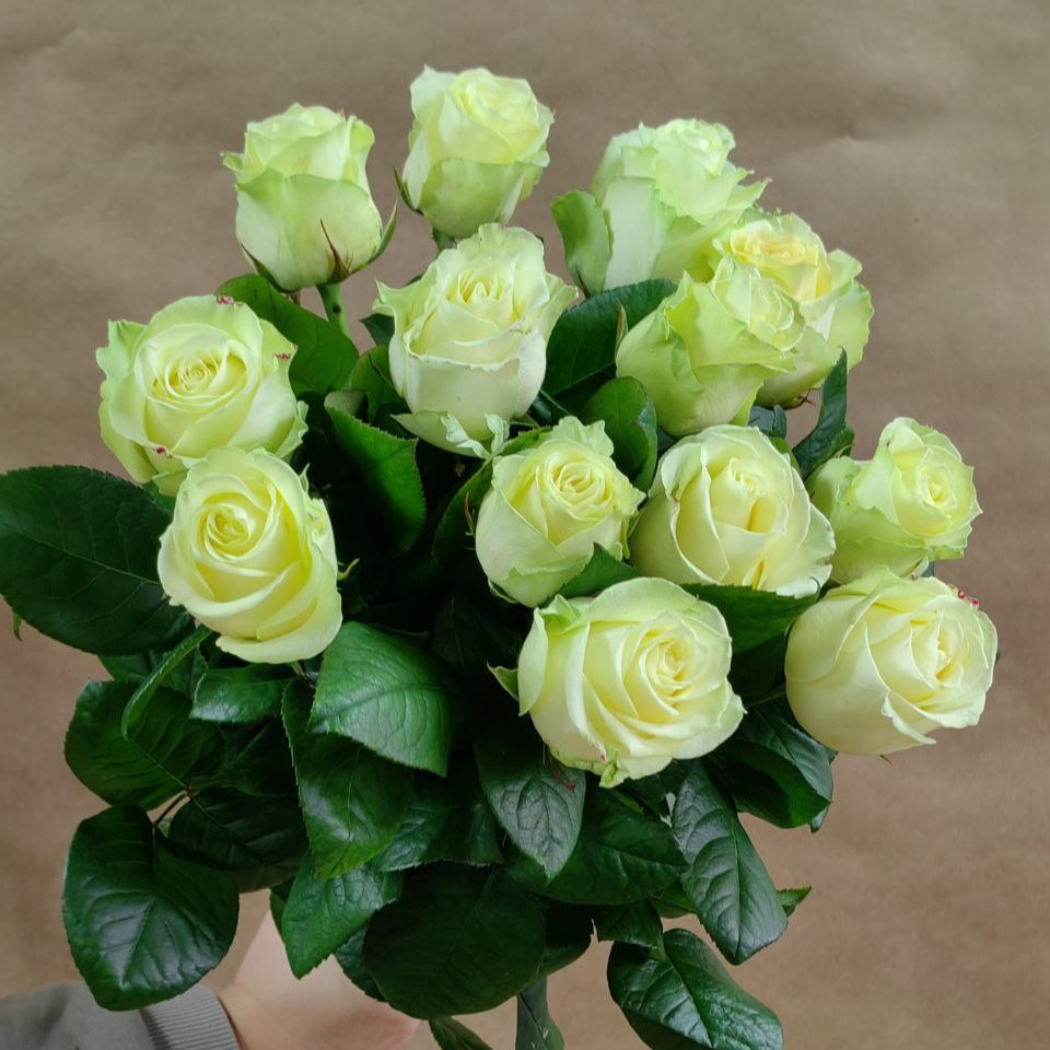 Белый тугой бутон с изумрудной каймой на первых лепестках.