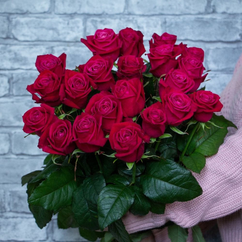 Сорт розы Шангри-Ла густо-малинового цвета с крупным бутоном.